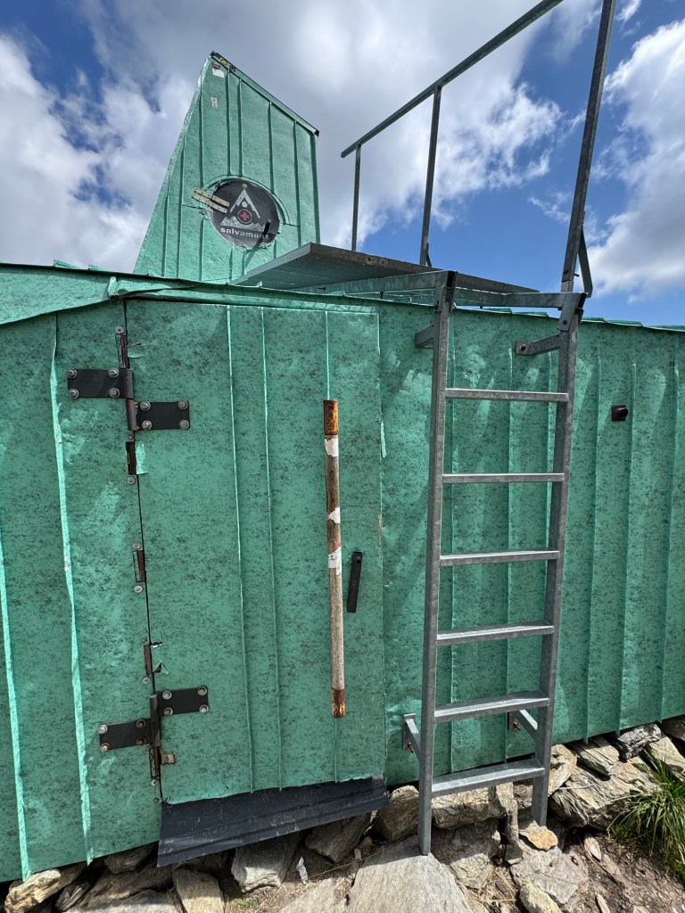 Finally I was standing next to a small lake – the sad remainder of another long disappeared glacier – and just a few meters away from it, was the destination of this solitary hike – the probably ugliest mountain shelters you will ever come across….