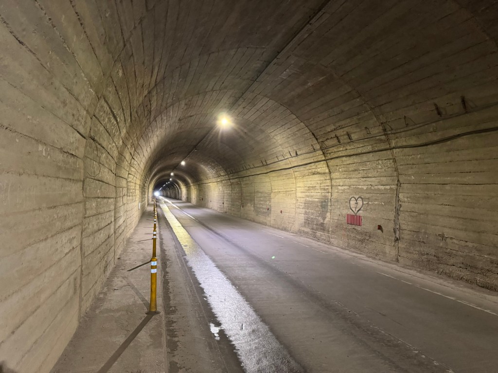 Eventually I reached a poorly lit tunnel, just below the central ridge of the mountain, that was connecting the Northern to the Southern side of the massif.