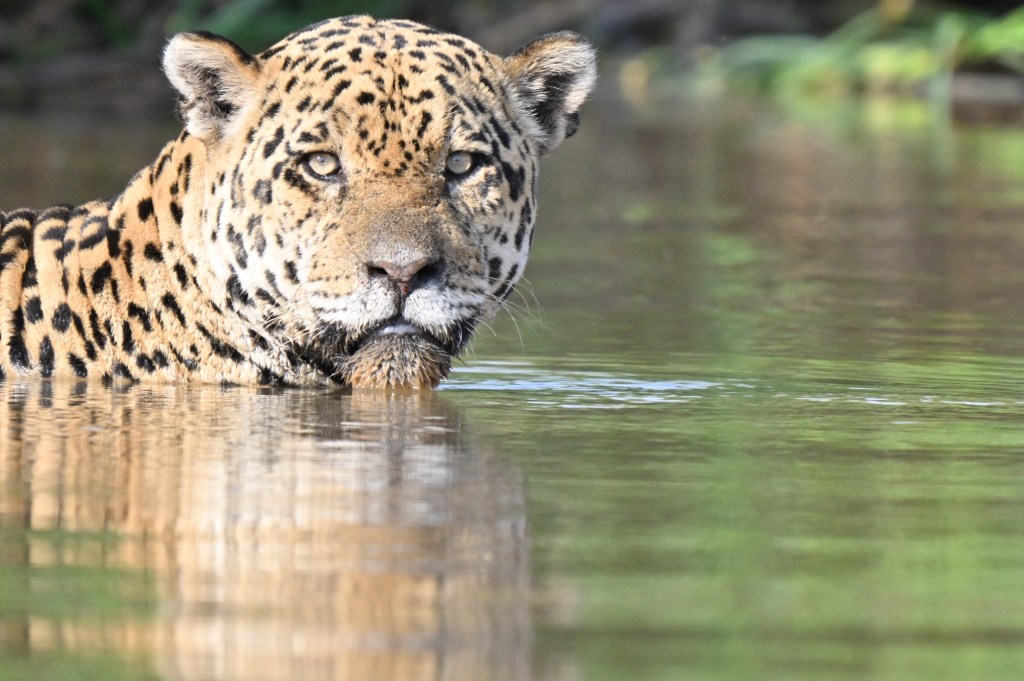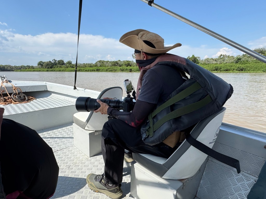 Less than an hour later, when it was starting to get progressively hot, we spotted another jaguar resting underneath a tree and shortly after that another two swimming across the river ….