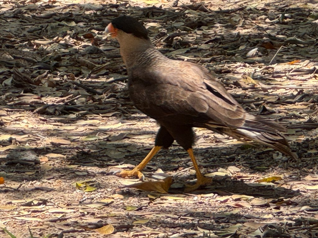 The monkeys, together with the resident caracaras, colourful birds of prey that were patrolling the premisses like a flog of chickens,