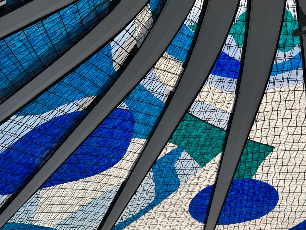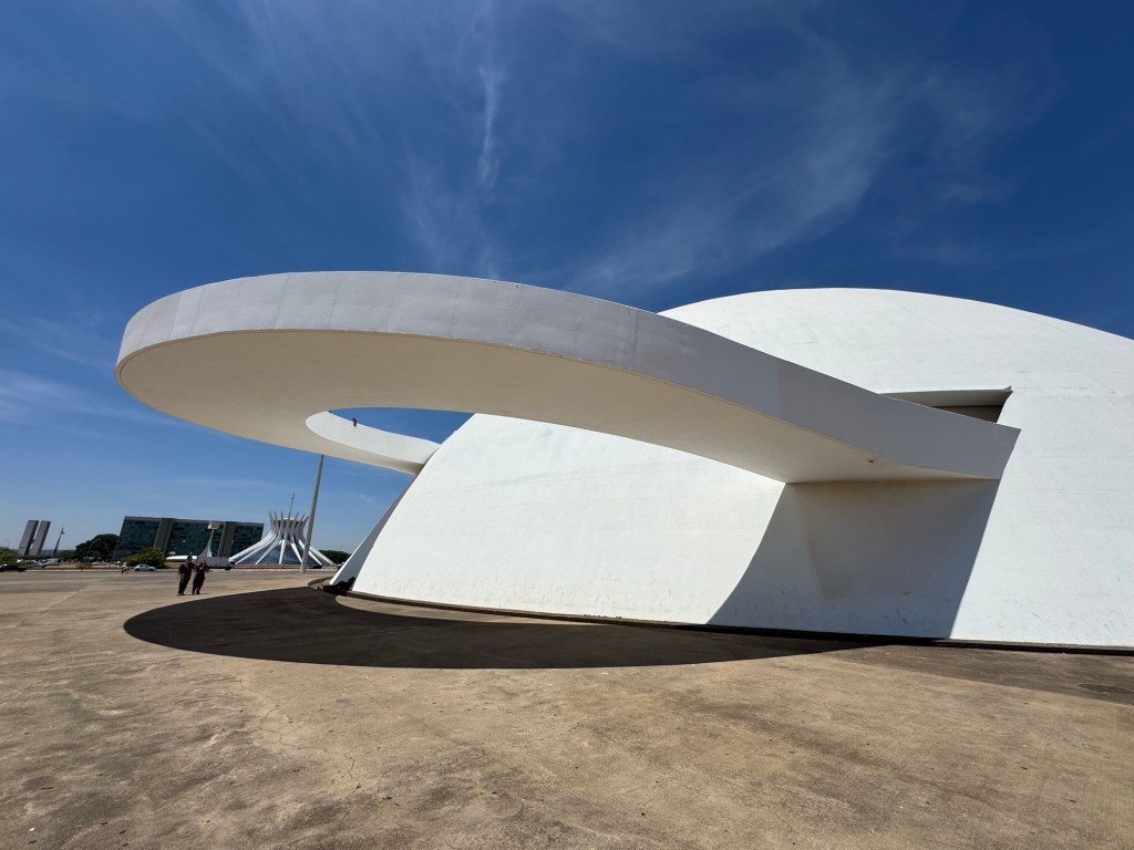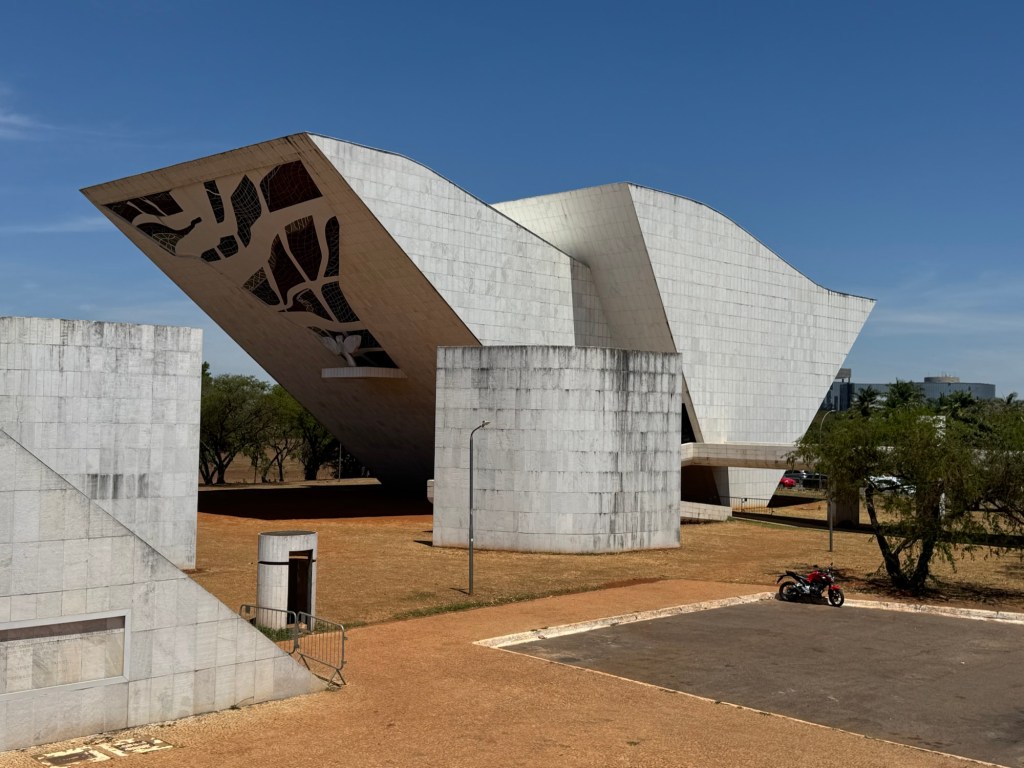 While recovering with a cold drink, it became clear to me that all the other famous buildings had to be explored with the help of a taxi. The equally stunning Palacio da Alvorado, the presidential residence, which features similar columns as the Palacio do Planalto, the pyramid-shaped National Theatre building, the National Football Stadium with its exoskeleton of seemingly a thousand columns, the dome shaped giant food hall next to it or finally, at the tail end of the Axis, the JK Memorial and the Memorial dos Povos Indigenas – all of them outstanding architectural statements and each of these buildings worthy of a chapter of their own.