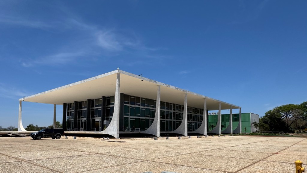 This building in particular, with its huge marble ramp and the large overhanging roof, supported by gently curved and yet very pointed columns, was quite rightly considered one of Niemeyer’s master pieces.