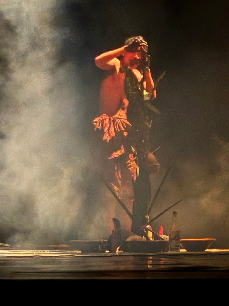 The non-binary actor was walking fast in small circles carrying a oszillator , that was producing some alien, distorted words or just sounds that filled the room. Then the light went off and there was a scream ….