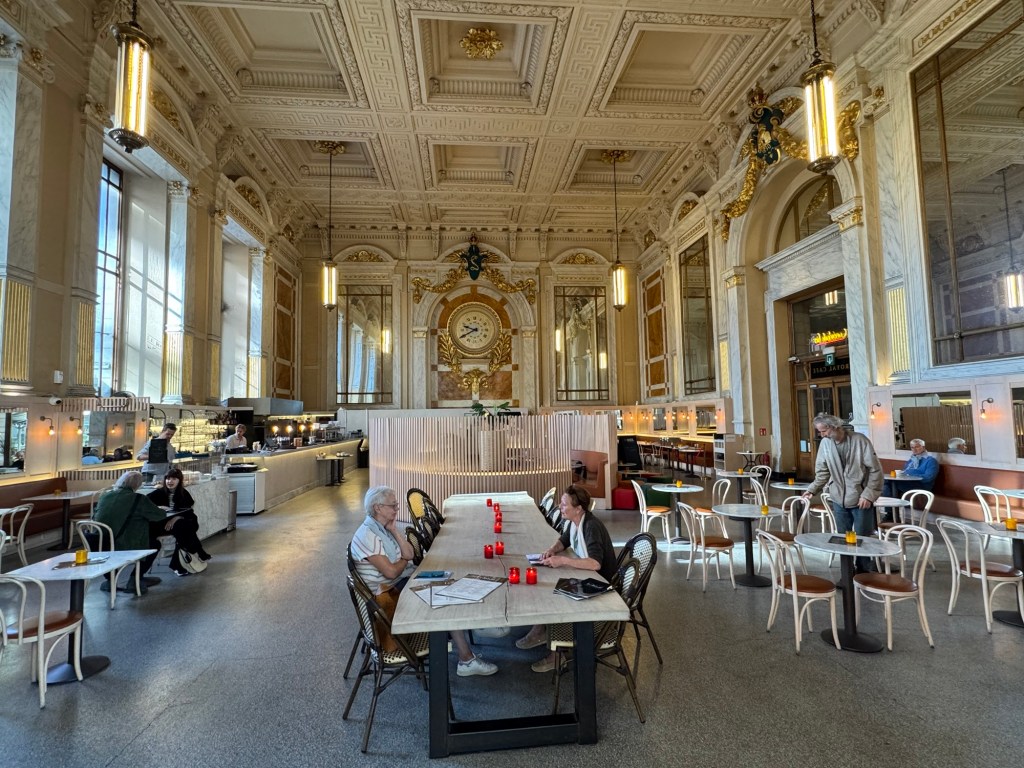 There is an entrance hall that appears to have integrated the fronts of palatial houses as its walls. Crowned by a sky-scraping, domed roof that would be the envy of any clerical building, it is currently been used as a concert hall. The not ordinary, but ‘royal’ railway café, might still serve coffee but has the appearance of a 19th century ballroom.