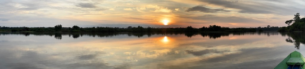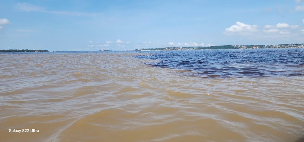 The milk coffee coloured water of the Solimões, the upper Amazon, originates from the Andes, has a temperature of about 22 degrees, carries far more sediment and flowes at a speed of up to 6 km/h, when it meets the water of the Rio Negro. As this river has its source not in the mountains above the tree-line, but in the rainforest of Colombia, it is considerably warmer with 28 degrees and has a much darker tea-like colour, due to the degrading plant material it is carrying. This also results in a much lower ph of between 2.9 – 4.2, which has the not inconsiderable advantage, that it is not particularly conducive for the development of mosquito larvae. In addition to this, the speed of the Rio Negro is much more sedate with not more than 2 km/h, so that when these two large water masses meet, they first run just alongside each other for about 6 kilometers before they are starting to mix and it takes them another 50 kilometres, before they get used to each other and blend completely to form a uniform water mass.
