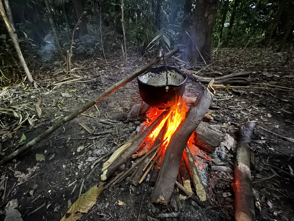 Helped by a surprisingly good campfire meal and a few cans of cold Brahma beer, I had – against my expectation – managed to find a few moments of sleep, despite the unusual sleeping position, the occasional mosquito that had still managed to get inside the mosquito net and despite the sounds of the jungle, caused by cicadas, tree frogs, tropical birds, howler monkeys and by occasional movements on the forest floor, which were ideally not further investigated.