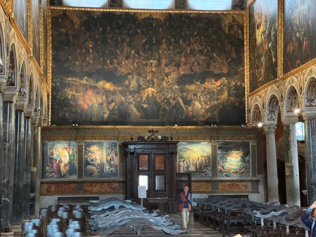 Richly decorated with depictions of biblical scenes on every part of its walls and ceiling, its sides covered with large paintings, the first impression was overwhelming. And yet, this house of God started to grow on me, not because of its opulence, but because of all the subtile, at times playful, but mostly frightening details.