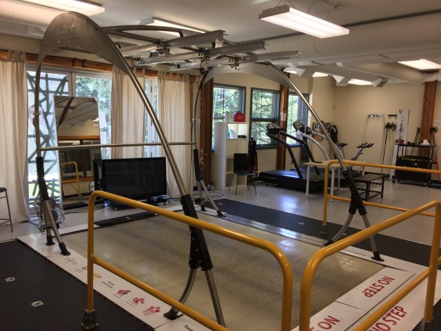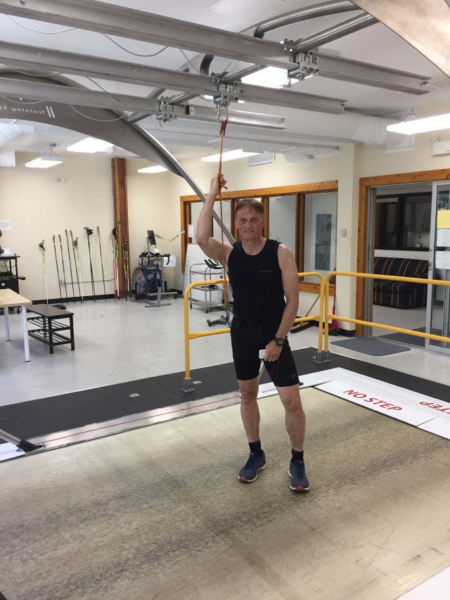 When visiting – as a member of the London Region Nordic Skiing Club (you can imagine that there are not a lot of us around….) – I was given a guided tour of their gym, including the facilities for the top athletes, featuring a custom made treadmill for roller skies.