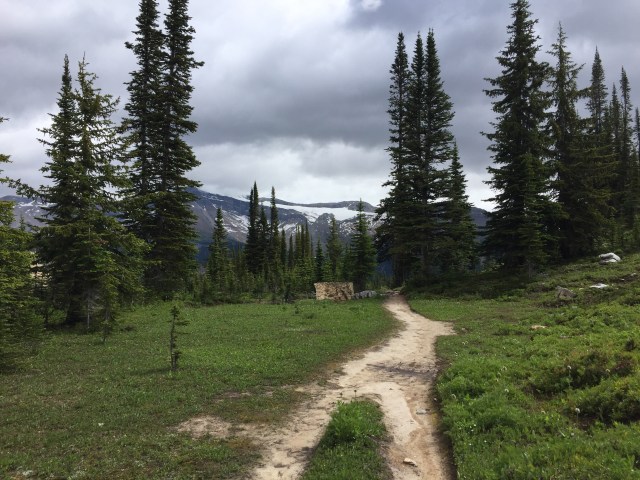 From there we eventually descended again the valley and joined the trail to the Stanley Mitchell Hut – another Canadian Alpine Club hut with matresses under the roof, an old woodburner and a couple of outside toilets – Silke was not really overwhelmed…