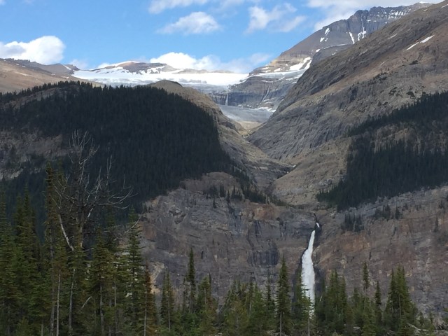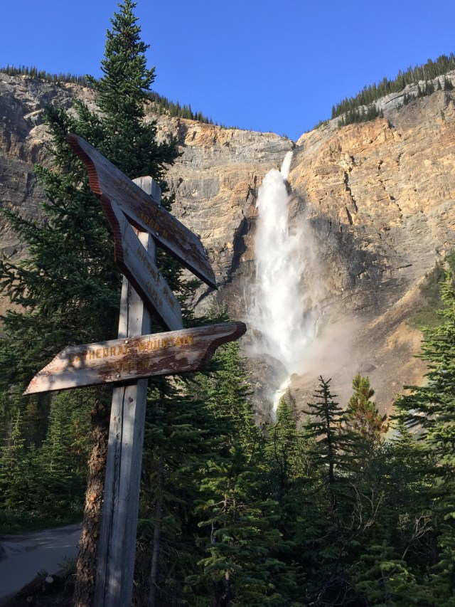 After a night at the rustic Whiskey Jack Hostel ( which had nothing to do with a guy called Jack and Whiskey was also not involved in the history of the place…..), the hiking trail started just next to the majestic Takakkaw Falls which are said to be four times as high as the Niagara Falls (but not that big….)