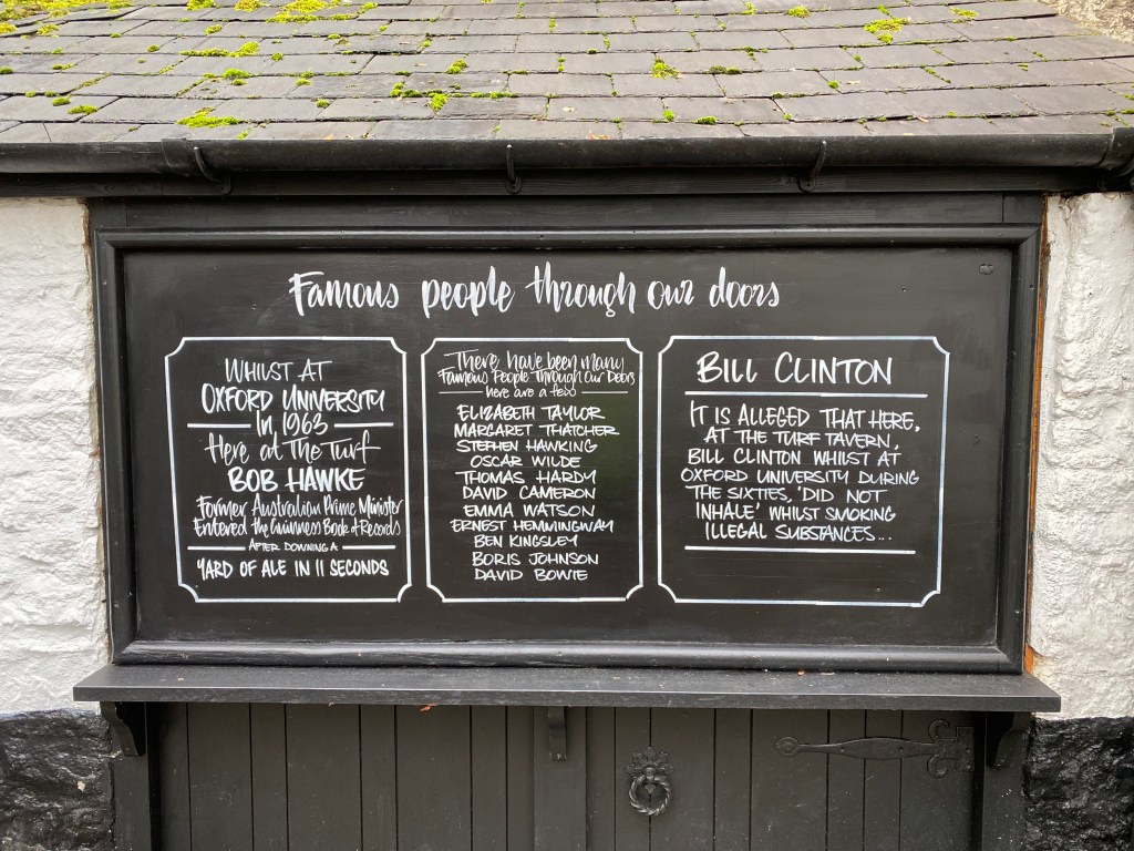 I am paying Oxford’s oldest pub , the somewhat hidden “Turf Tavern” a brief visit.