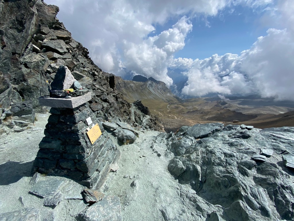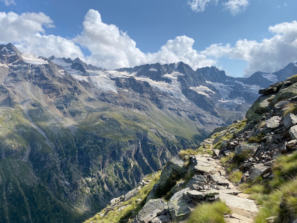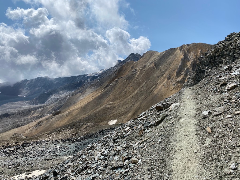 Heading then South, the trail led around the Bec du Vallon before descending steeply into the glacier valley below.