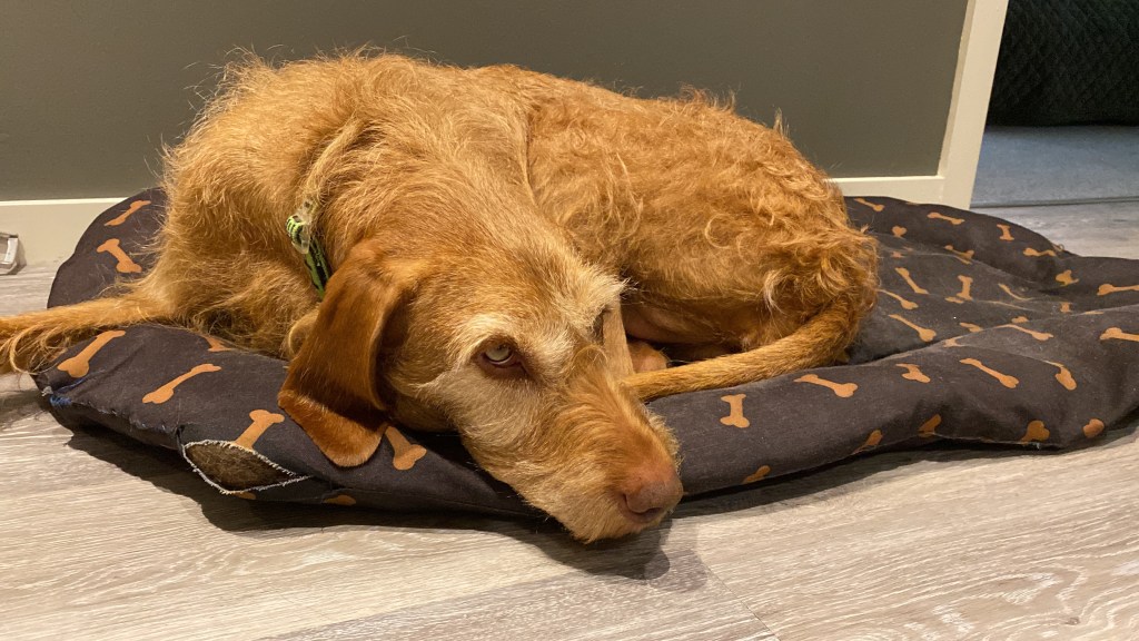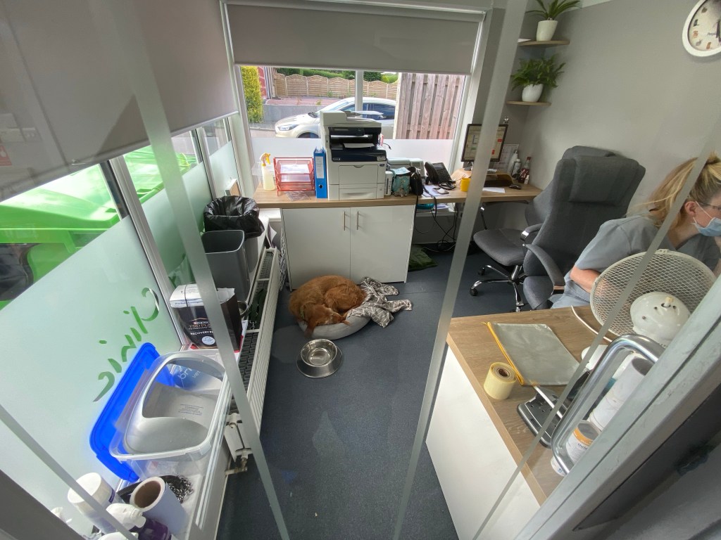 Also Mia seemed to be a happy bunny, settling in as an additional member of the reception team, despite that fact that her bed here was designed for a currently holidaying Miniature Schnauzer…..