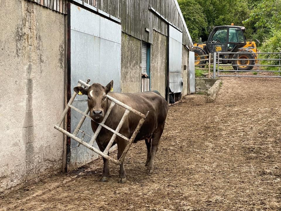 800+ kg of distressed bovine muscles combined with 30 kg of solid steal gate can ruin your health or even finish your life in a matter of seconds if you are taking the wrong decision with such a patient. I was grateful that a far more skilled colleague from Glasgow Vet School resolved this problem with the help of a decent sedation.