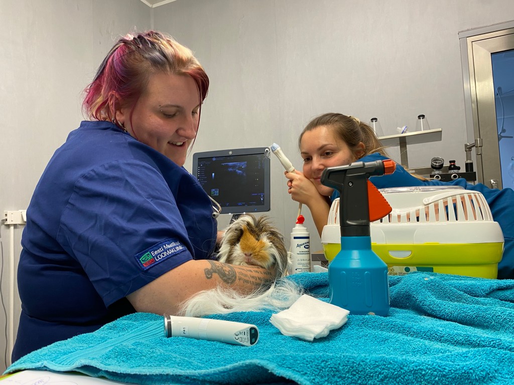 The consulting rooms were spacious and well lid and there was a relaxed atmosphere with no shortage of staff attending to a number of small animal patients – some of them not so impressed to be here….