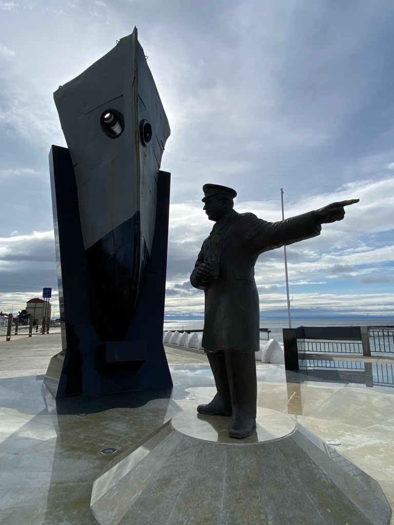 It is Monday morning and I am walking along the windswept promenade of Punta Arenas with the Magellan Strait on my right side and Tierra del Fuego visible on the horizon. With the local head quarters of the Chilean Navy behind me, I am passing the cut out prow of the Yelcho and the life sized statue for its commander Luis Pardo Villalon, who so famously managed to rescue Ernest Shakelton’s crew just over hundred years ago.