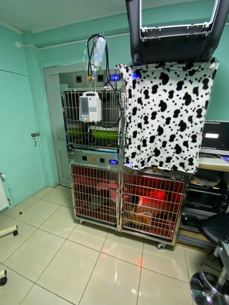 As it is just a branch practice, there is only a small waiting room, a consulting room and a small operating theatre plus a few cages for the recovery of patients after their anesthesias .