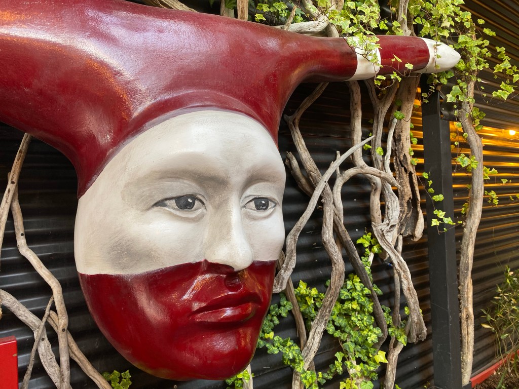 Right opposite of the memorial, looking out to the Sea is a yellow house with the image of a bearded veterinarian painted on the wall and a couple of imaginary cats sitting on a window sill at the first floor.