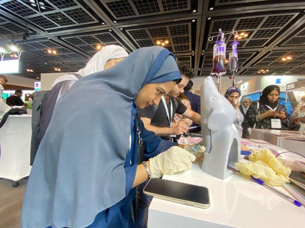 The people might have been different but the engagement with new technology like artifical patients to practice venipuncture procedures at the exhibition or their interaction with the speakers was not only the same but possible even more intense, considering that it was the first time that something like this had found its way to the Middle East.