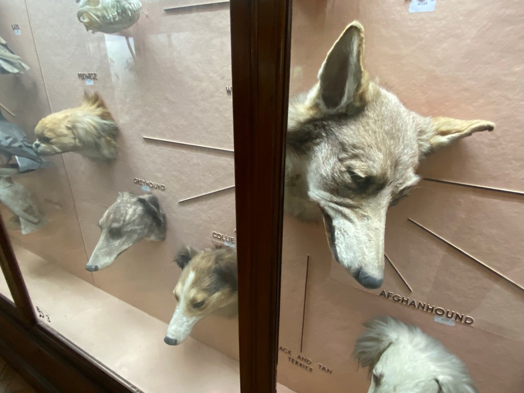 Somewhat off putting, but surprisingly contemporary in its educational message was a display of decapitated dogs, showing how much our domestic canines had started to divert in their external features from their mutual ancestor – the wolf.