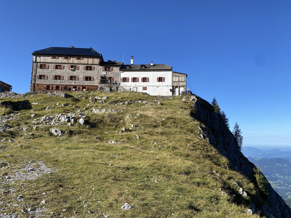 After passing a small chapel of remembrance for whoever had died of an accident in this part of the Alps ( a surprisingly large number of hikers and climbers I thought….), a rock cornice with the cabin placed right on its tip became visible another 700 m above me.