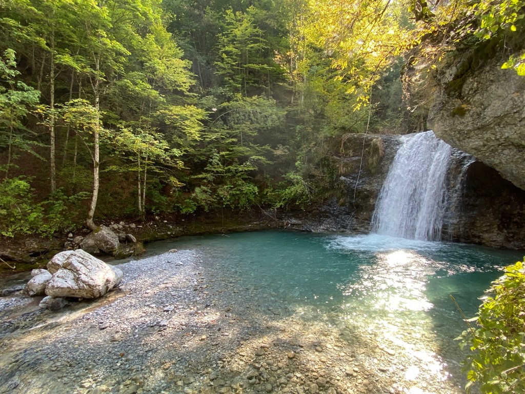 The hike the previous day went through a deep gorge, most of the time in a lush forest, along a river with a lot of water falls, pools and even a natural spring underneath a rock ledge.