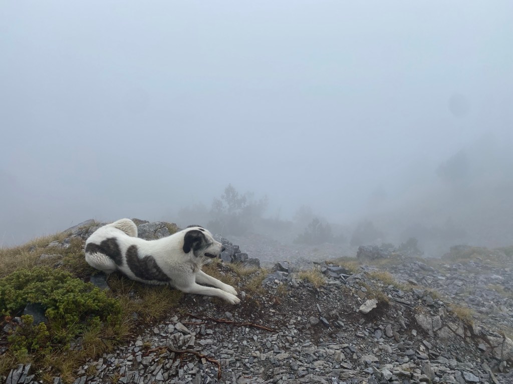 In the middle of the trail, out of the mist, appeared suddenly a huge dog. These dogs are normally used by the local shepherds to guard their flock against wolfs and even bears and it is advisable to give them a wide berth .