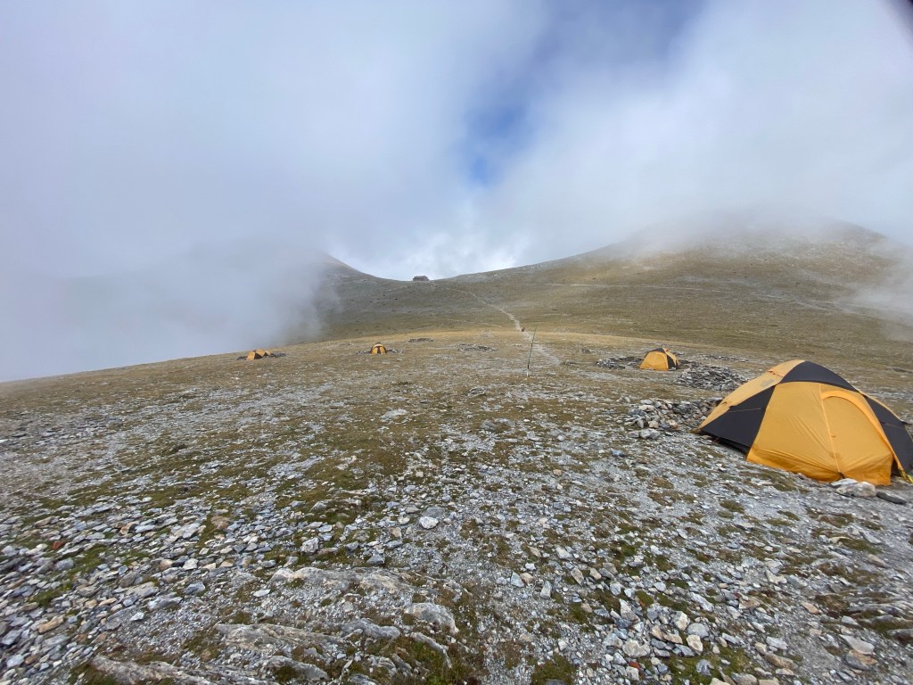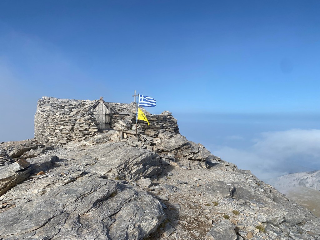 This was not a great day to summit the highest peak in Greece, but as the recent torrential rain had destroyed the water supply to the hut, leaving it without running water and – worse – any sanitation, this was also not a good place to stay….
