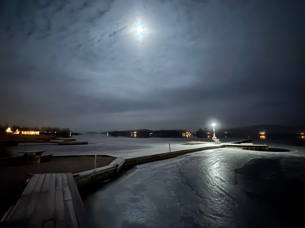 On a few occasions, I wrap up well and go for a nocturnal run along the abandoned, icy road in-front of my house. The tarmac is reflecting the cold, yet gentle light of the moon. There is no other sound than that of my breath and that of my trainers on the frozen ground.