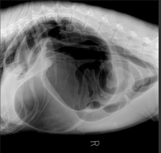 It was the classic presentation of a gastric torsion, a twisting of the stomach, that had the habit to occur nearly exclusively in the evening or at night in older, large breed dogs.