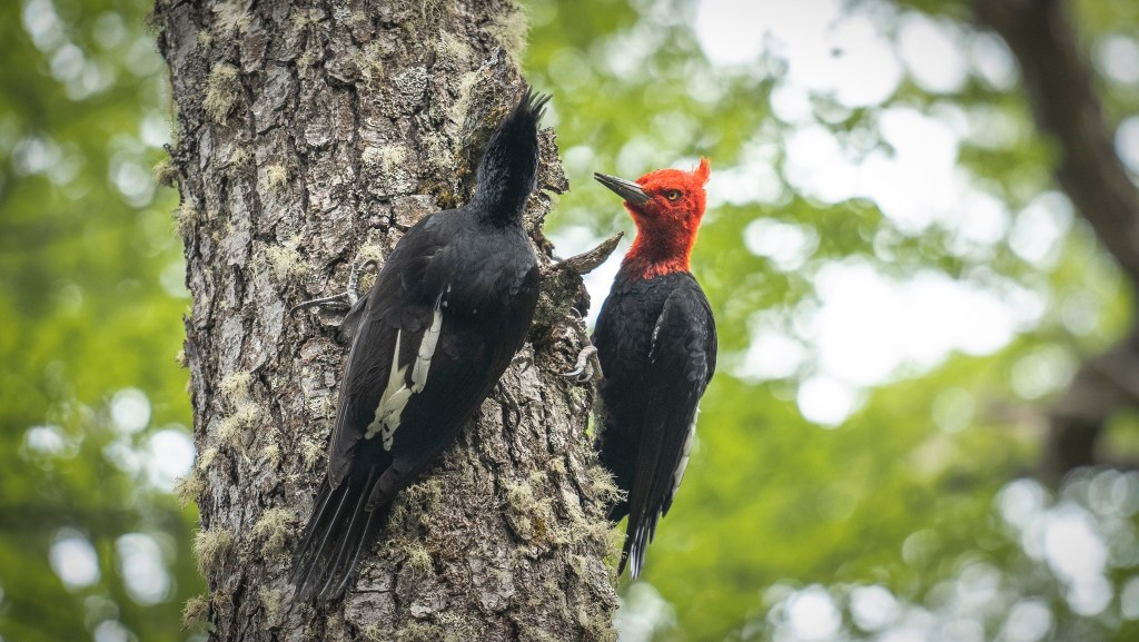 Once back on the trail, the view is again changing completely and yesterday’s open plains are replaced by a dense forest with a lot of fallen trees and full of various birdsongs, but with very limited sightings of animals at all. The only exception are the red and black Magellanic woodpeckers, with some of them appearing not being fazed by humans at all.