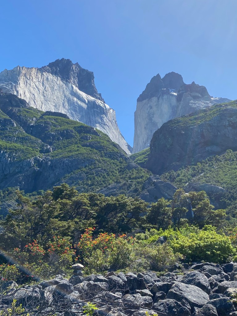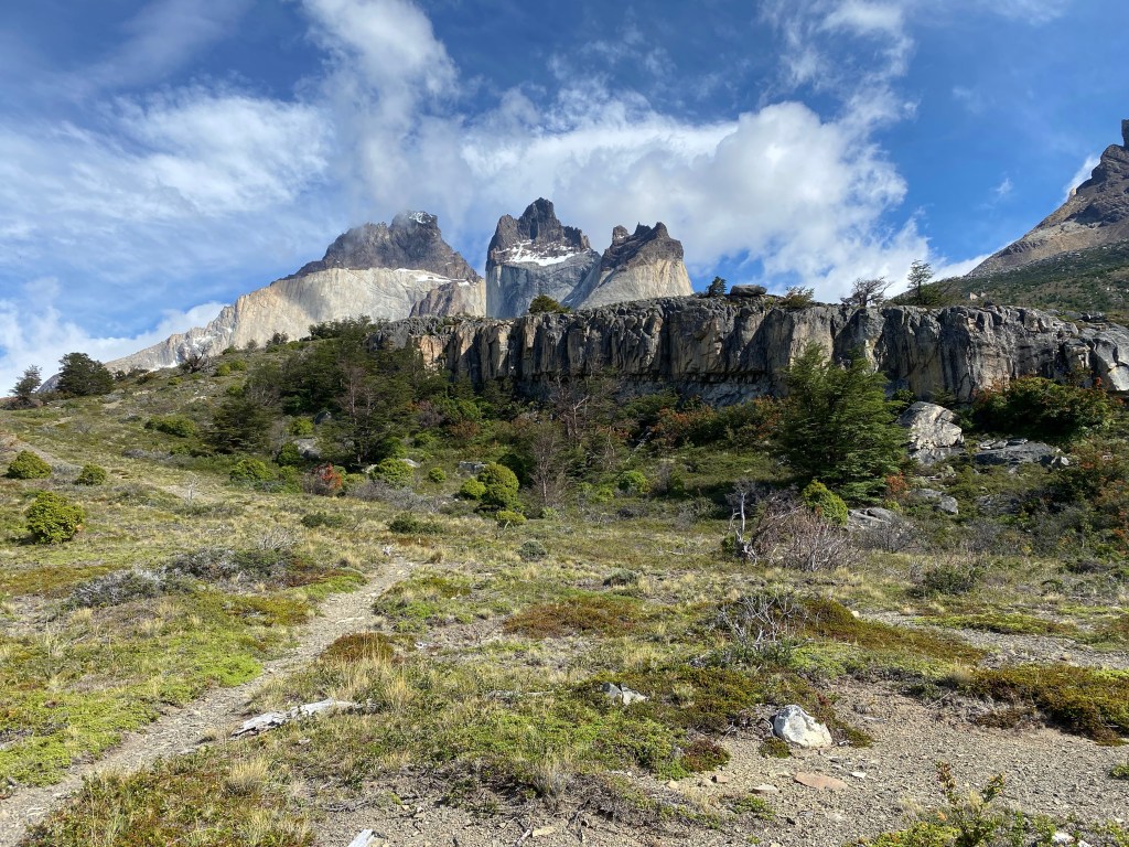 Unaffected by the unfavourable news it turns out to be a beautiful day with a short hike along the South face of the Cuernos (the Horns) – a pair of mountain peaks that appear as if they have been separated right in the middle with a giant knife.