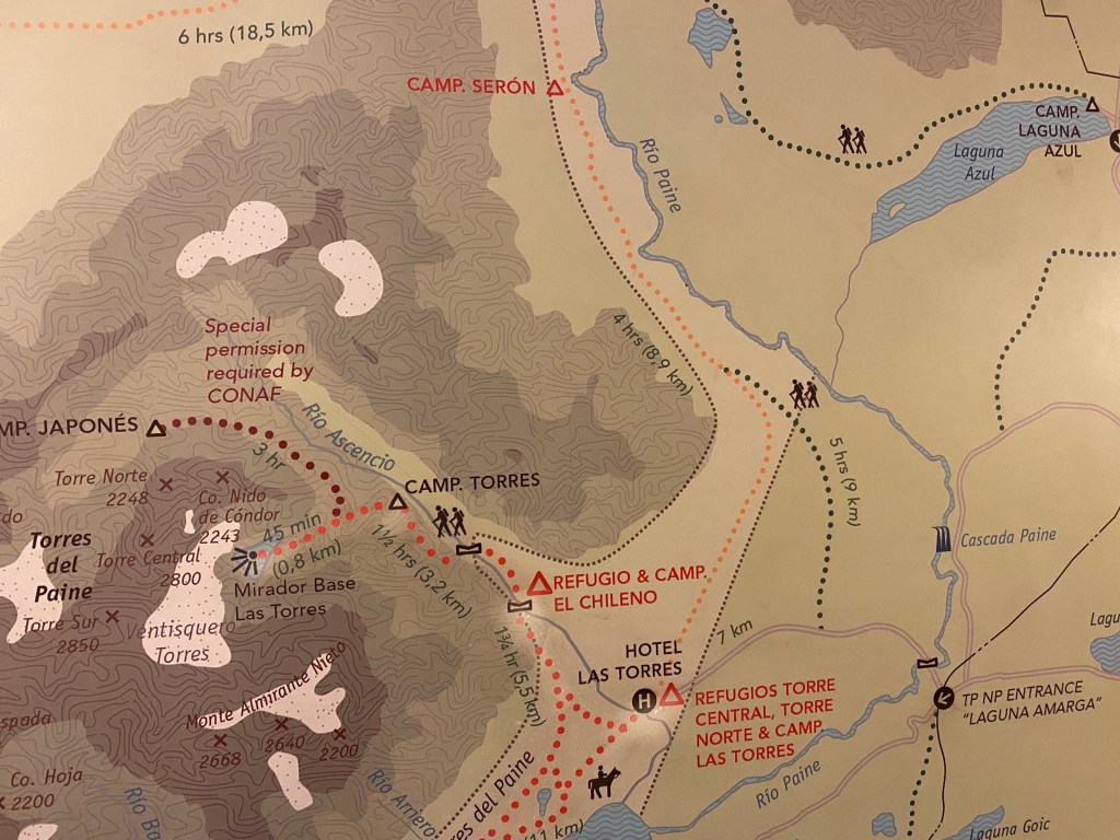 Although some hikers report that so far it is easy to walk around the barriers on the way up to the Torres, it dawns on me how wise my decision had been to cover this central section of my trip right on the first day……