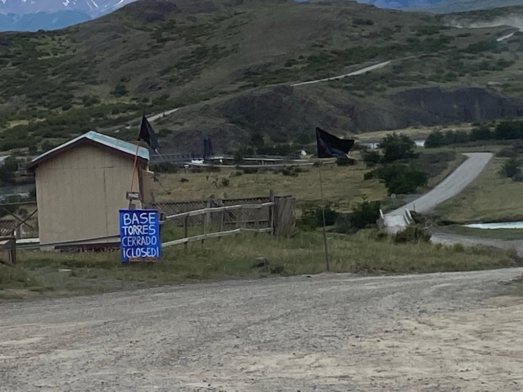 Furthermore, when we arrive back at the road junction of Laguna Armaga, a sign is just been erected to inform everyone that until further notice the access to the Torres is now completely closed….