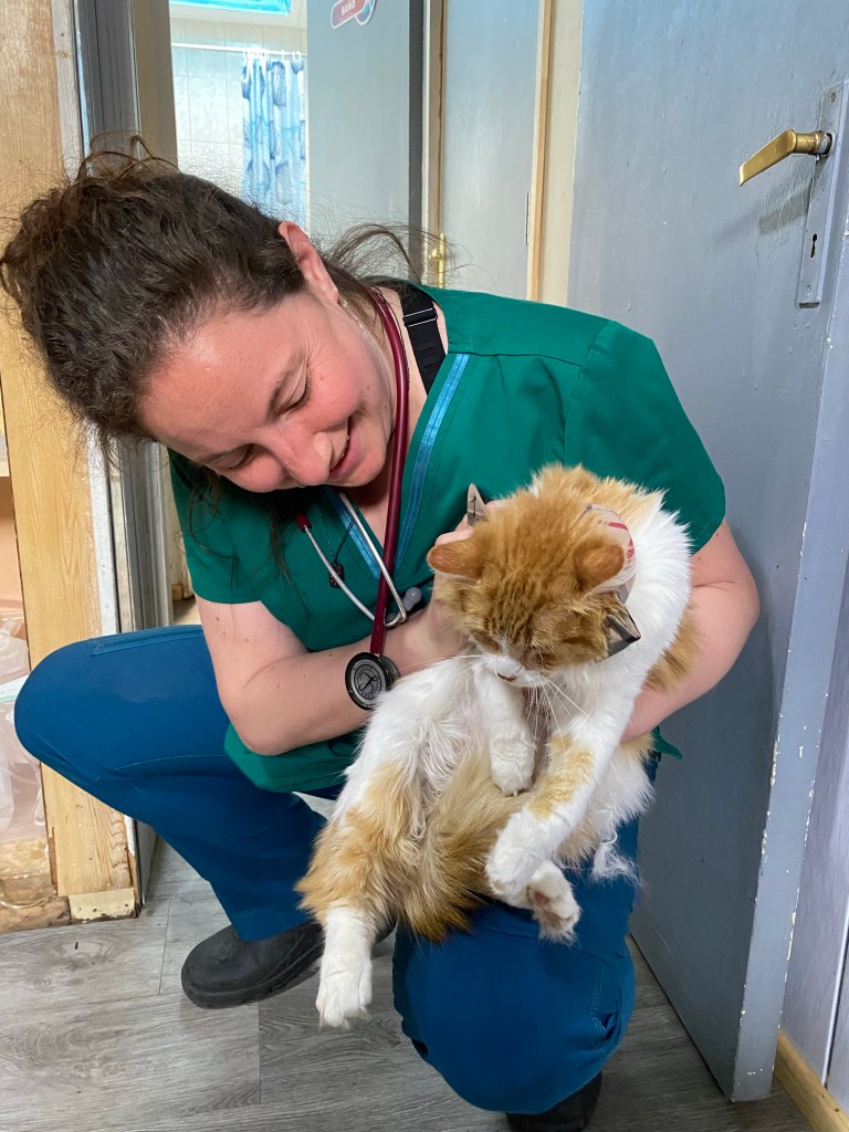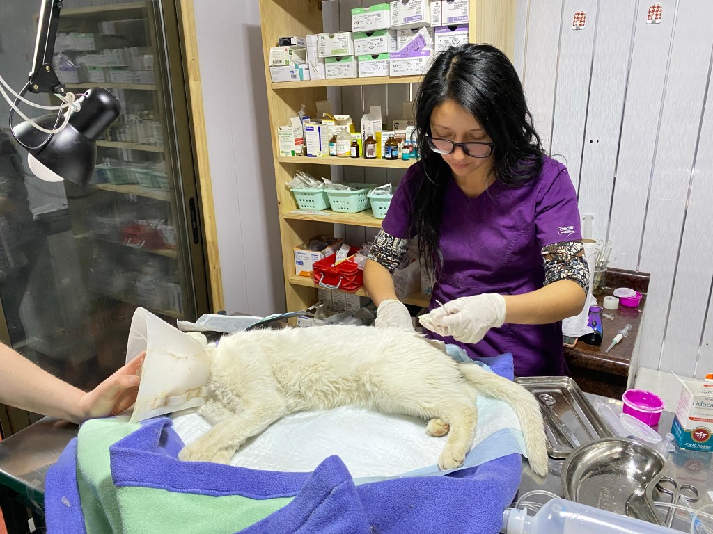 Without any hesitation I was given a tour of the place and a few minutes later I found myself in the operating theatre helping to sedate a feline patient with a cat bite abscess – here in Patagonia as well a very common injury.
