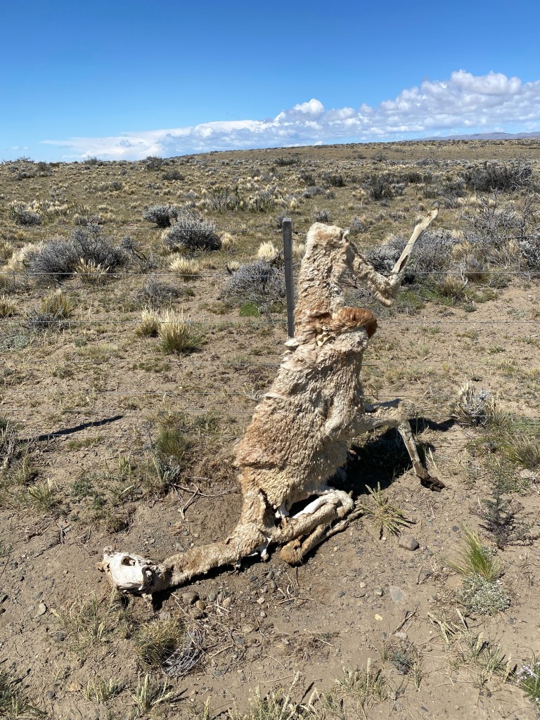 In this arid landscape virtualy devoid of any but the hardiest vegetation , with hardly any human settlements and just the cadavers of some unfortunate guanacos in the fence alongside the straight, endless road telling a tale of an most unpleasant death, my heart went out to the first brave people who tried to cross this land on foot or on horse back.