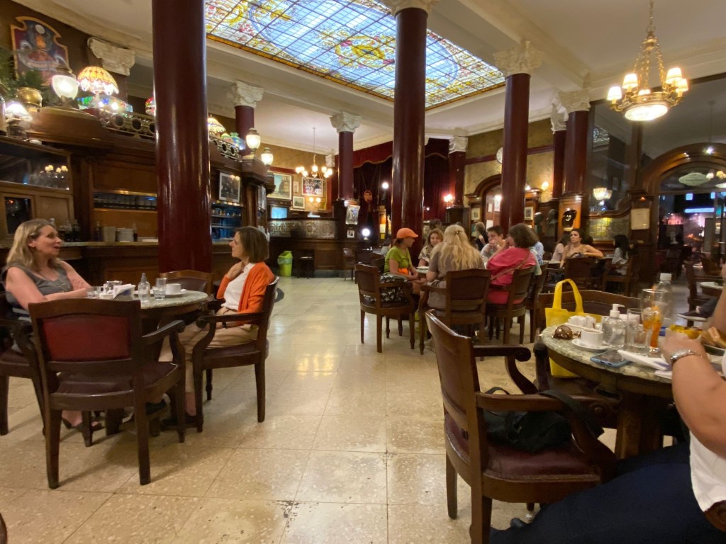 No such things today though, so that I am left just with my imaginations while enjoying the grande surroundings, one of my final coffees in Argentina and a somewhat average Tiramisu which I recall to be much better on the other side of the big pond…..