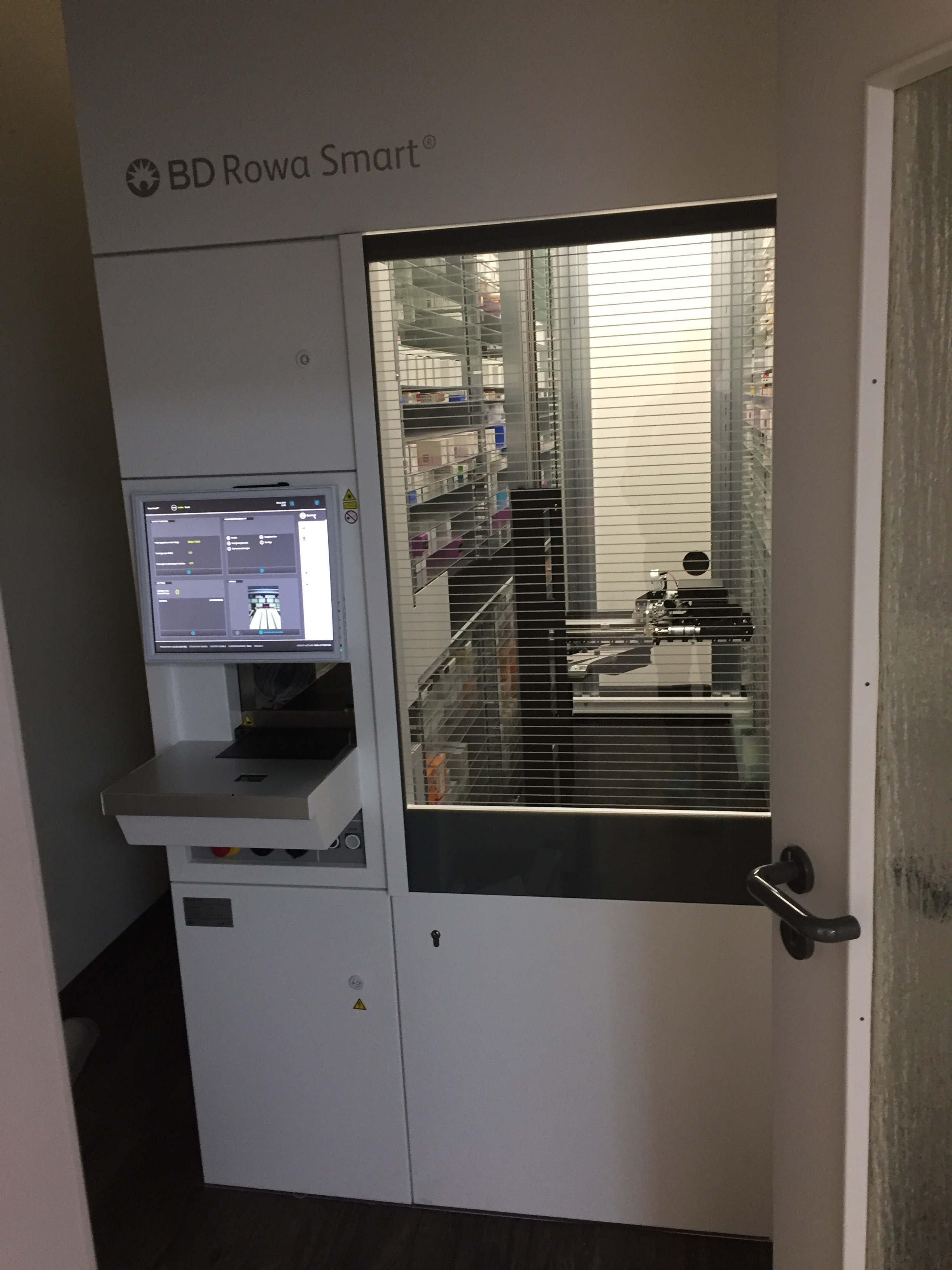 All medication in the unit is climate and stock controlled and a centrally located robotic arm is collecting and dispensing the right amount of medication to the reception team.