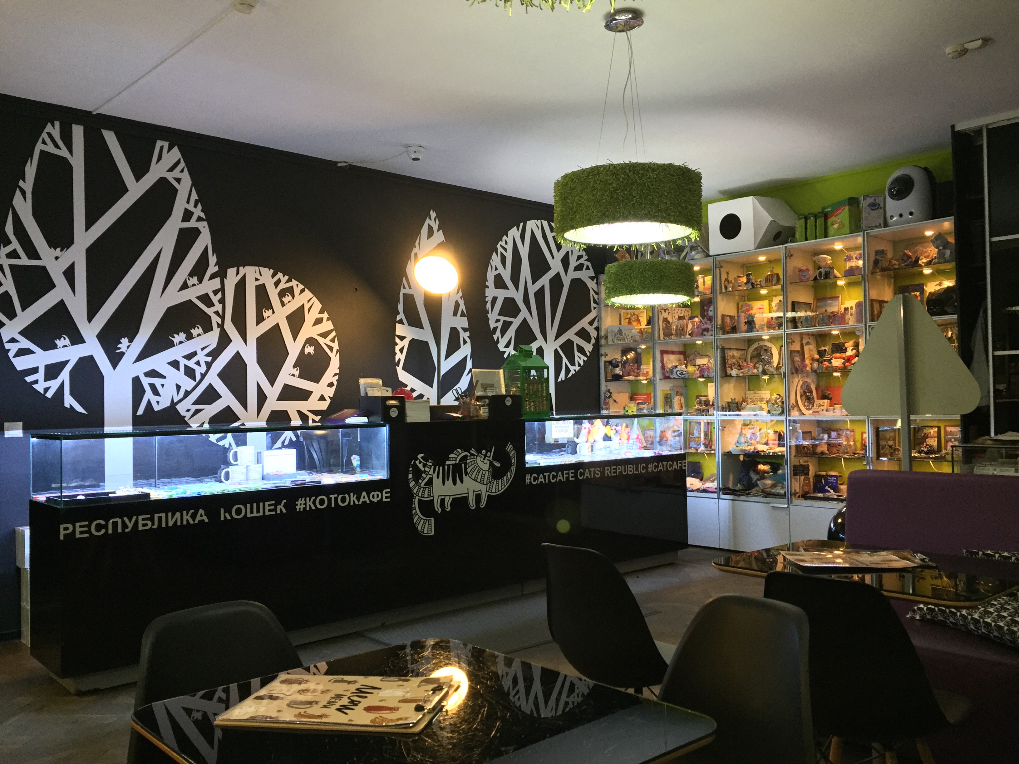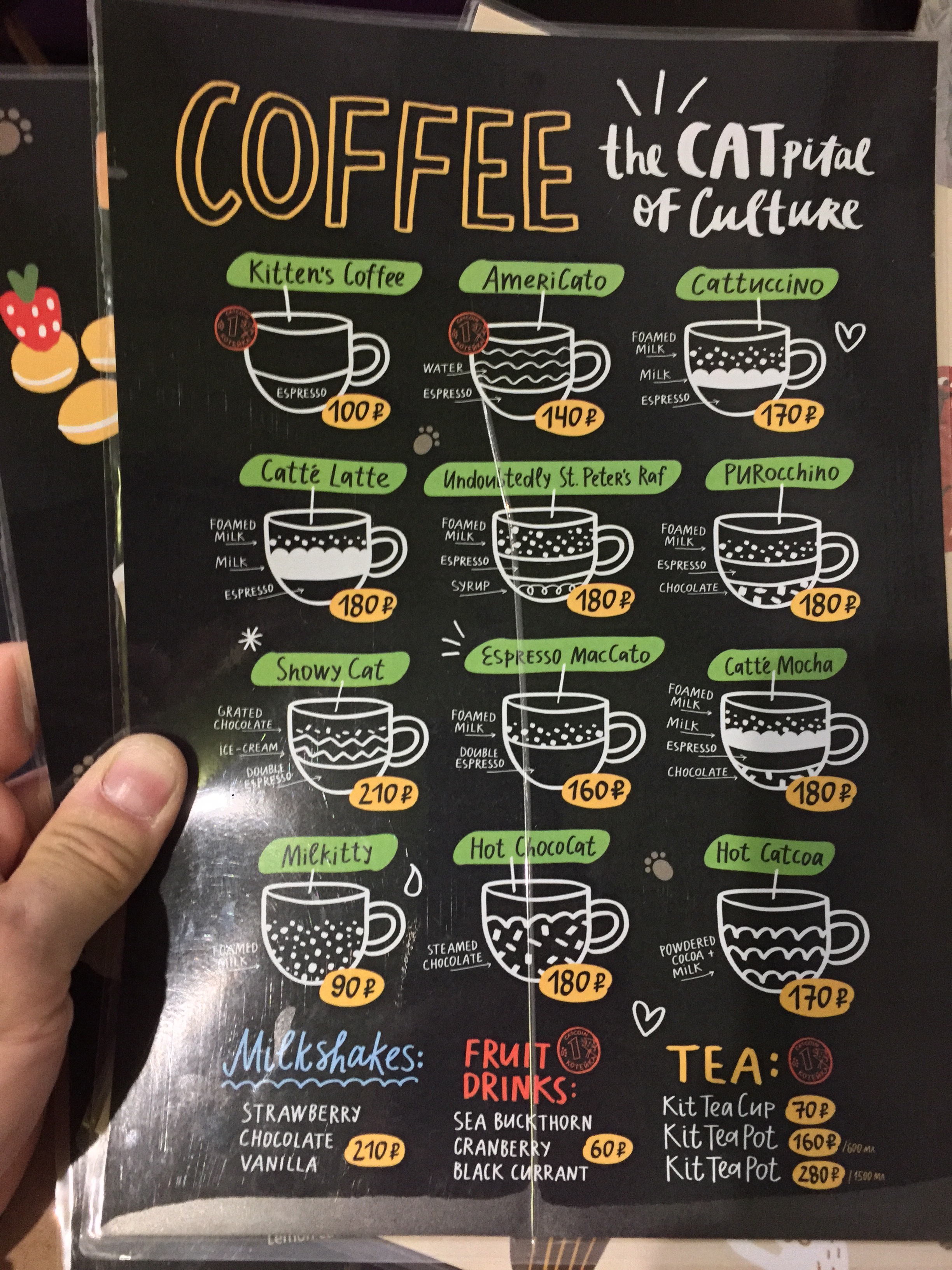 with a lot of feline themed decorative items – most of which are for sale – , but with no “real” cat in sight. The cat inspired Menue