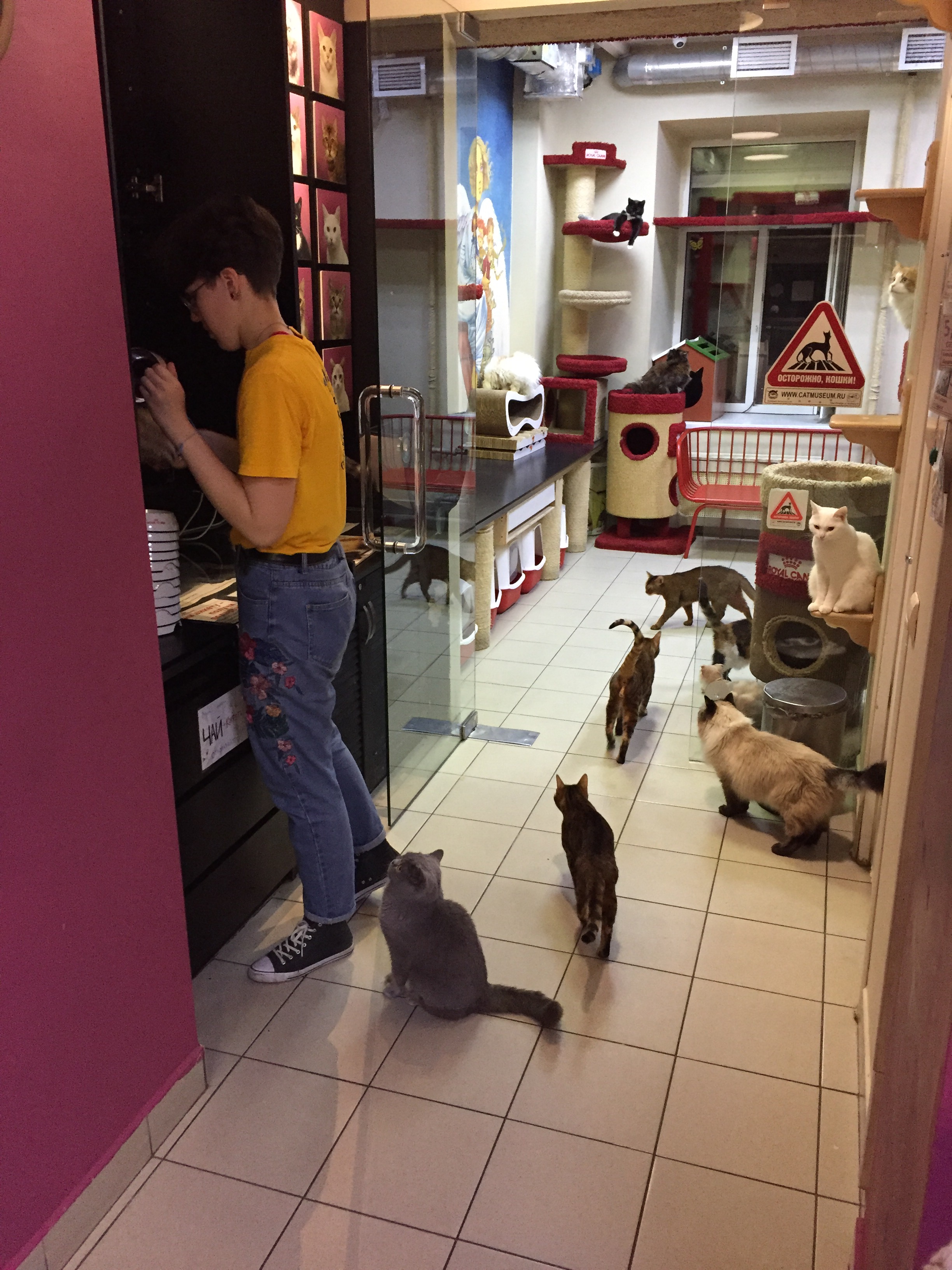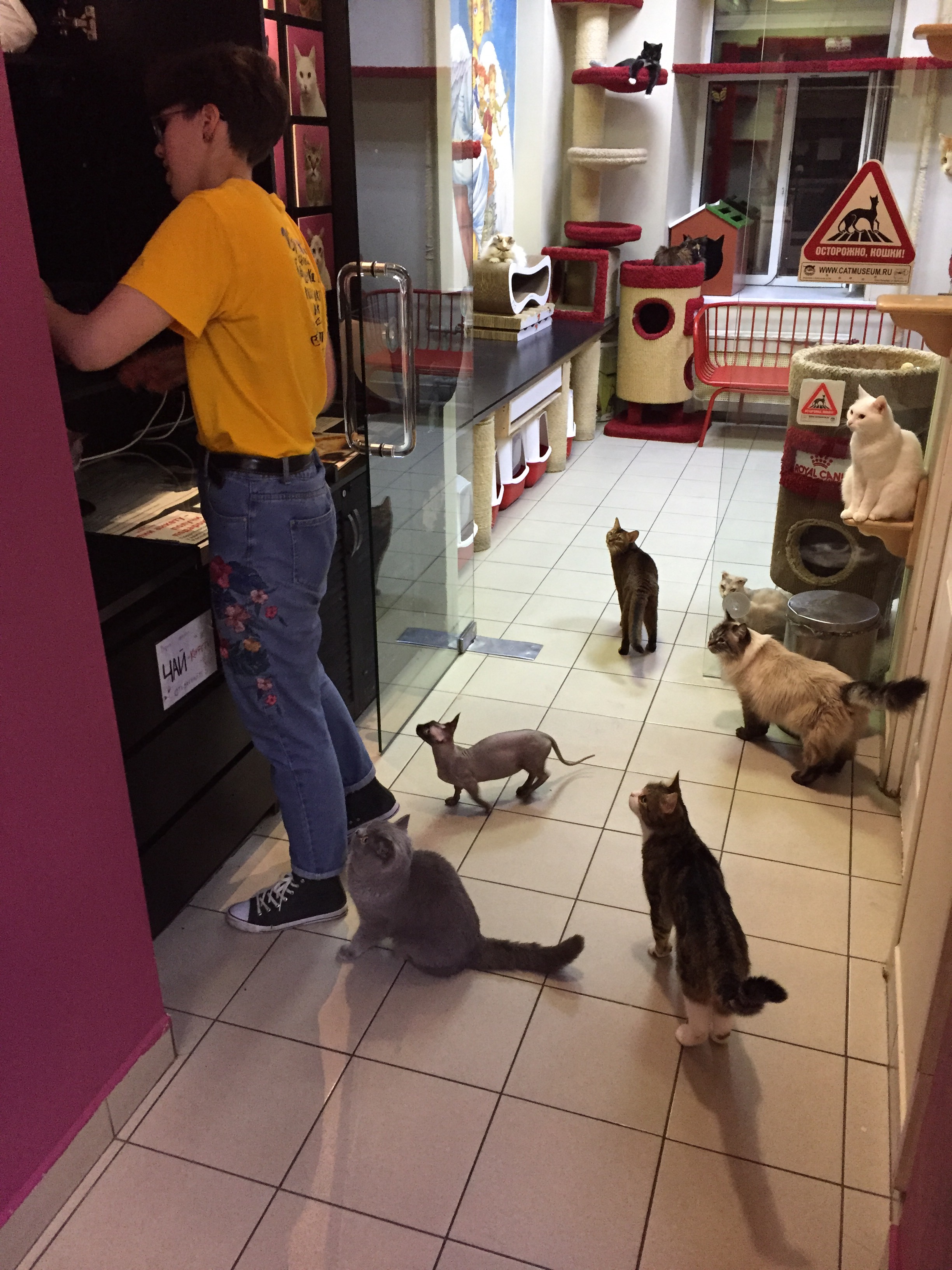 Up to 15 people per hour can enjoy this feeling and are not allowed to pick any of the cats up. As humans are so common visitors, most cats ignore them and regard them mainly as moving obstacles and as twice daily provider of food ( which is not a great difference to my own cat…..)